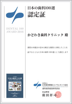 当院が「日本の歯科100選 2016年版」に選ばれました。